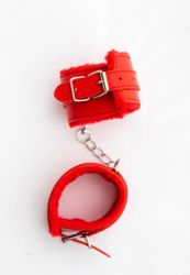 Hygienische und hypoallergene Handschellen, die innen vollständig mit weichem Stoff ausgekleidet sind.