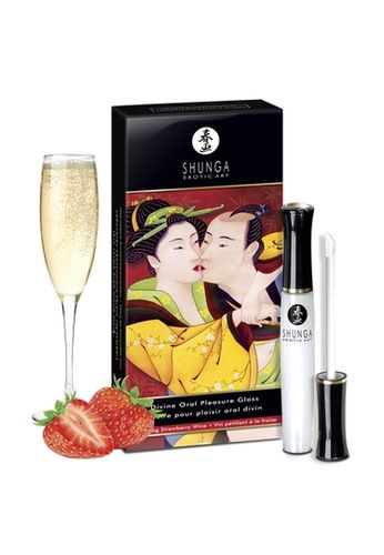O divino gloss Morango-Champagne pode ser aplicado nos seus lábios ou nos do seu parceiro para estimular os beijos íntimos.