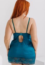 O babydoll Obsidia tem uma cor cativante, um cetim bonito e ligeiramente elástico e, sobretudo, umas copas soberbas com motivos vegetais bordados.