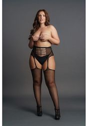 Collants suspensórios em tamanhos grandes, perfurados à frente e atrás.