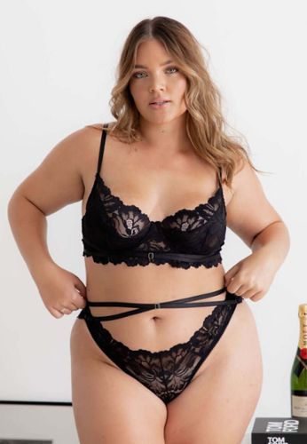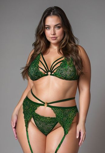 Een setje voor grote maten in een ongewone kleur, voor wie van originaliteit houdt, zelfs in lingerie.