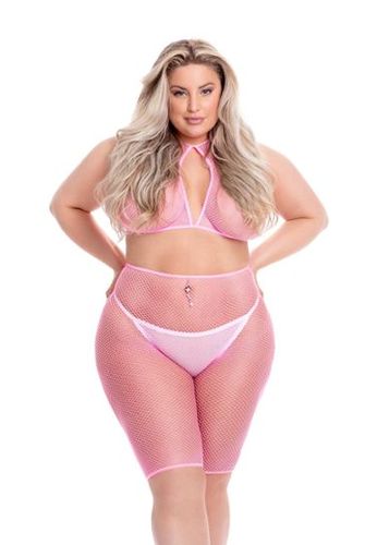 Visnet van hoge kwaliteit voor een prachtig bloemroze setje van groote maat.