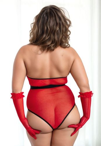 O cinto com fivela dourada, as luvas a condizer e o corte atrevido nas costas criam uma fantasia ardente que a fará reinar suprema. Disponível em preto ou vermelho, o perigo nunca foi tão tentador.