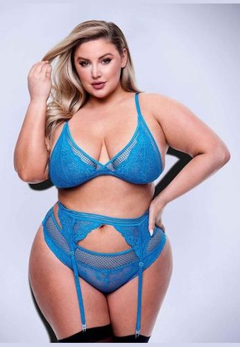 Um conjunto preto que não passa despercebido: sutiã com aro, cinta-liga e tanga em malha transparente. A peça acompanha as curvas, a linha é super lisonjeira e os strass pretos dão um brilho discreto que prende o olhar… exatamente onde você quer.