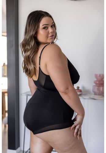 Um body que combina sedução e suporte. Design sofisticado com inserção de renda e compressão integrada para uma confiança absoluta.