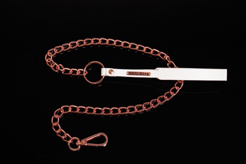 Um teddy luxuoso feito de cetim elástico que se ajusta como uma segunda pele, com sutiã de copas abertas e elegantes laços de corda que envolvem o corpo. Detalhes metálicos de alta qualidade completam o visual sofisticado.