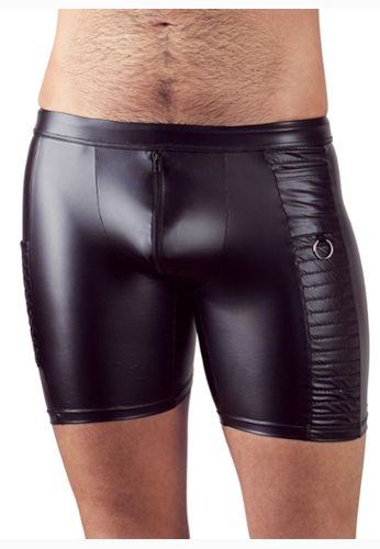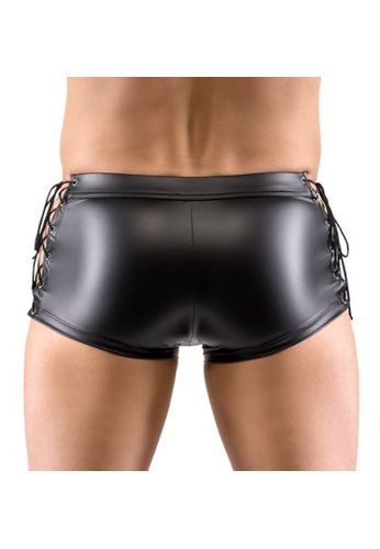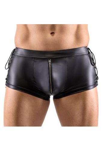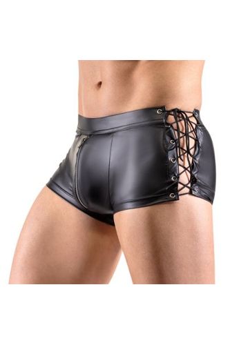 Calções boxer em pele sintética de alta elasticidade para mostrar as suas melhores características. Com abertura frontal com botões de pressão.