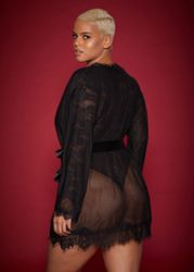 Para um toque extra de glamour, opte por uma pulseira fina no pulso que atrairá subtilmente a luz através das mangas transparentes. Se quiser usar este negligee para uma sessão fotográfica boudoir, jogue com os contrastes usando lençóis de cetim que farão sobressair a textura delicada da rede e da renda.