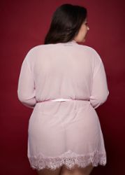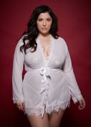 Négligé Provence, um soberbo quimono em rede fina e fluida, decorado com debruns de renda recortada.