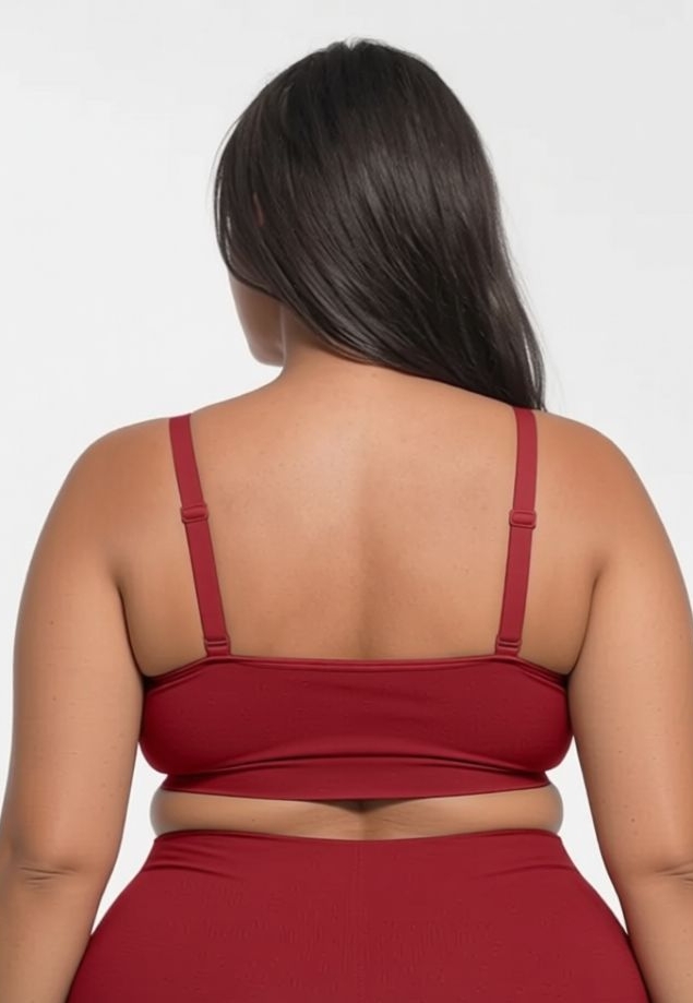 Um bralette seamless bordô feito para o dia a dia: elasticidade 360° e conforto leve, design sem aro e sem bojo, com frente de dupla camada para mais opacidade. O decote redondo com renda dá um toque sexy e divertido, e as costas largas ajudam a um efeito mais liso e confortável.