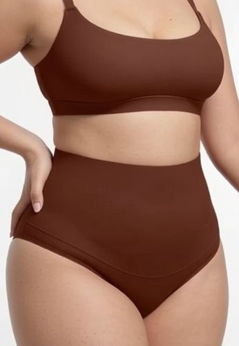 A chocolate shaping brief that does what it promises: a high waist to smooth and sculpt, plus a thong cut for a no-lines finish. Second-skin comfort, soft support, and a waistband that stays put.