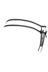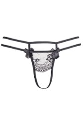 Tanga grande e soberba com abertura nas virilhas. Soutien e cinto de suspensão a condizer da mesma coleção.
