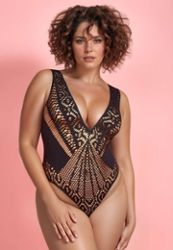 La malla se ajusta como una segunda piel para un acabado gráfico y atrevido. Y además es práctico: el cierre a presión en la entrepierna facilita llevarlo, incluso bajo un outfit. Un esencial negro pensado para realzar las curvas en talla grande.